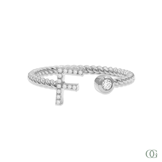 Add a personalized sparkle with our Alphabet Twisted Natural Diamond Ring – F.